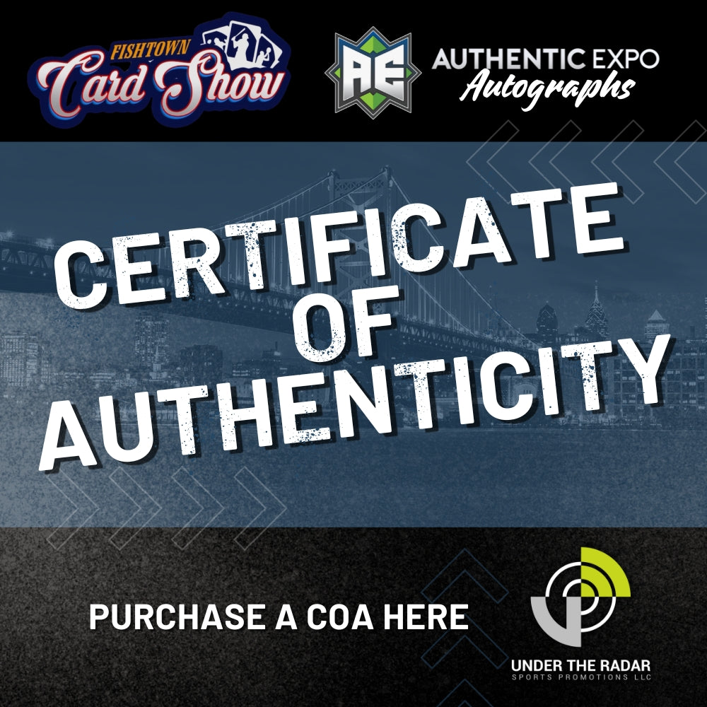 A Certificate of Authenticity from Under the Radar Sports includes a tamperproof hologram with individual serial number, a certificate with matching hologram, as well as a photo-matched database entry for every item.